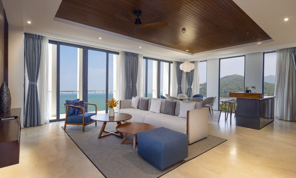Không gian nghỉ dưỡng mở ra khung cảnh đại dương bao la, kết hợp hài hòa giữa sự sang trọng và tiện nghi. Từ ban công, bạn có thể tận hưởng trọn vẹn vẻ đẹp của biển và dãy núi Xuân Vân.