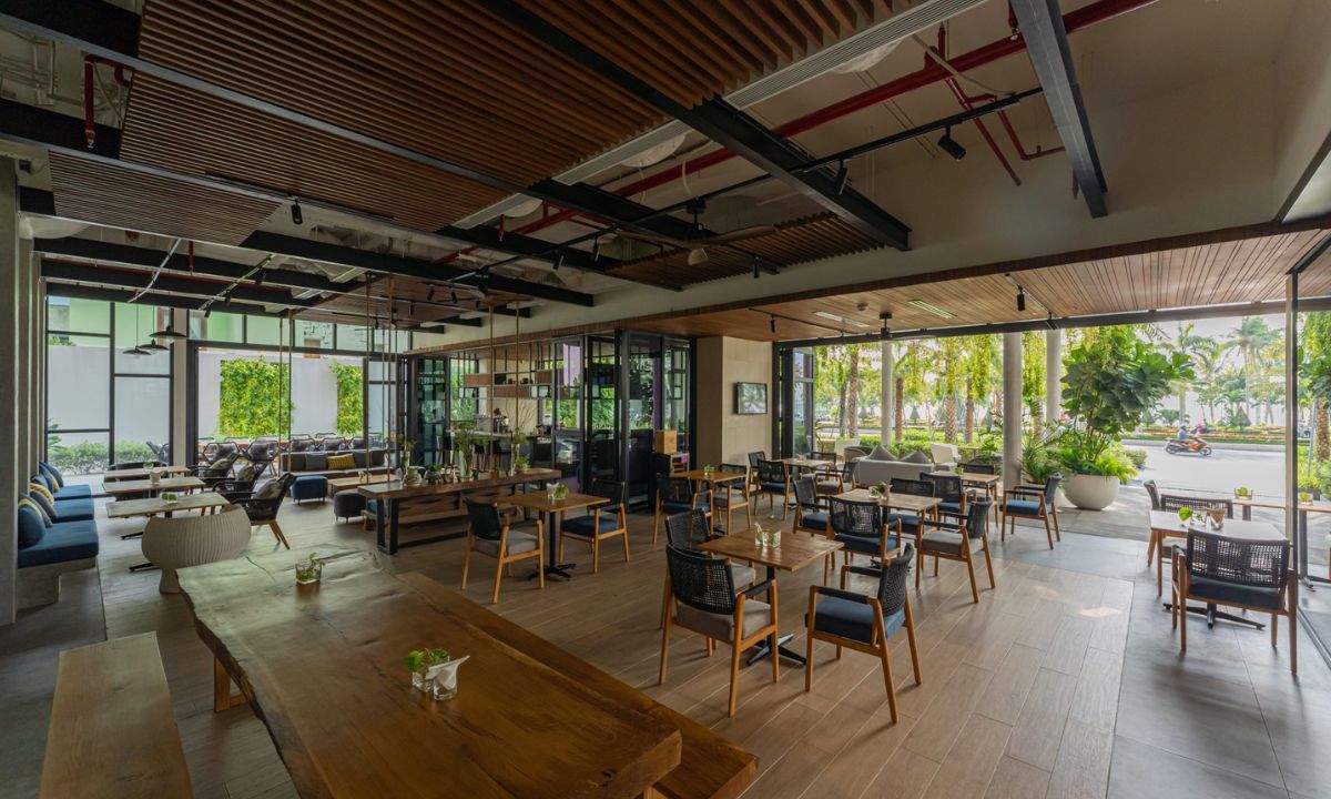 Cabbar Bistro: Tận hưởng không gian thư giãn tại tầng trệt, nơi bạn có thể thưởng thức cà phê thơm ngon trong không khí trong lành. Khung cảnh xanh mát và âm thanh sóng biển tạo nên trải nghiệm gần gũi và ấm áp.