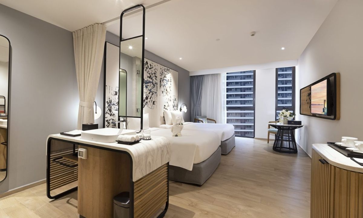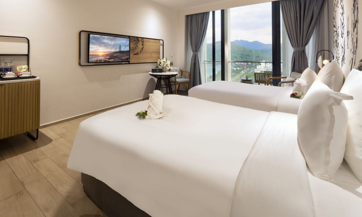 Với 256 phòng nghỉ được thiết kế hiện đại, khách sạn mang đến không gian mở thoáng đãng với tầm nhìn hướng biển tuyệt đẹp. Mỗi phòng đều được trang bị cửa sổ lớn và các tiện nghi cao cấp, giúp bạn tận hưởng khung cảnh biển xanh ngay từ phòng nghỉ.