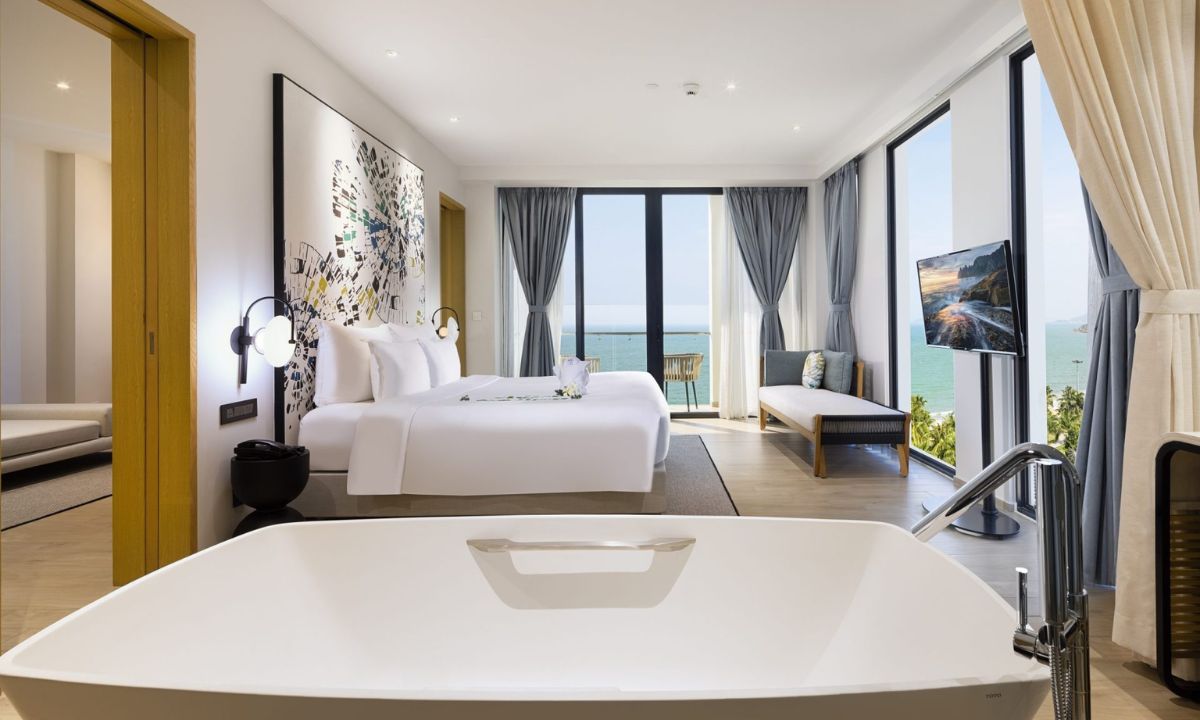 Là biểu tượng của sự xa hoa, phòng sở hữu ban công lớn với tầm nhìn toàn cảnh thành phố và biển cả. Các tiện ích cao cấp như bồn tắm sủi và phòng xông hơi mang đến trải nghiệm nghỉ dưỡng đỉnh cao.