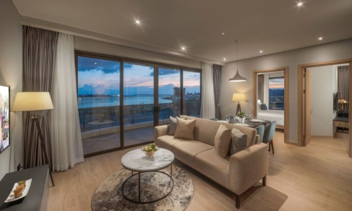 Với thiết kế rộng rãi và đầy đủ tiện nghi, Hạng Premier 2 phòng ngủ là lựa chọn tuyệt vời cho gia đình hoặc nhóm bạn tìm kiếm sự thoải mái và riêng tư. Căn hộ được trang bị đầy đủ bếp, máy giặt và không gian sinh hoạt rộng rãi, giúp bạn dễ dàng thư giãn sau một ngày khám phá Hạ Long.