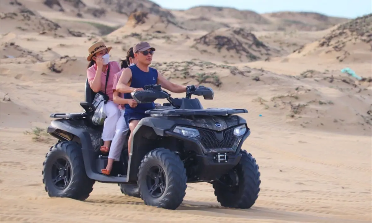 Khu trượt cát Quang Phú cách resort 13,5km, là nơi yêu thích cho những ai mê cảm giác mạnh. Các bạn sẽ được trượt trên những đồi cát trắng mịn trải dài đồng thời bao quát cảnh quan ngoạn mục khi đứng trên đỉnh cồn cát nhìn xuống cảnh biển và núi non hùng vĩ hòa quyện trong ánh nắng vàng rực rỡ.
