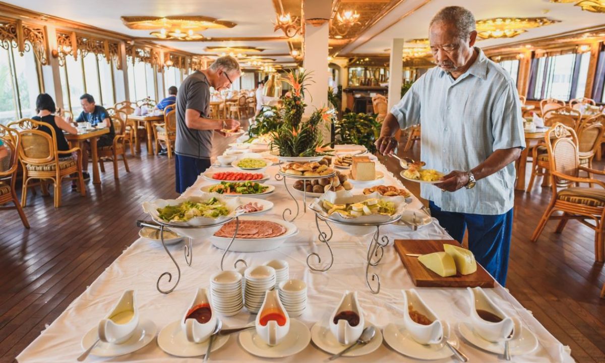 Khách sạn có 3 nhà hàng cao cấp, nổi bật nhất là Riverside Restaurant với tầm nhìn ra sông Hương và không gian tinh tế. Nhà hàng Cung Đình tái hiện bữa ăn Hoàng Gia của triều Nguyễn, mang đến trải nghiệm độc đáo. Lobby Bar và Poolside Bar phục vụ các loại cocktail hấp dẫn cùng đồ ăn nhẹ ngon miệng.