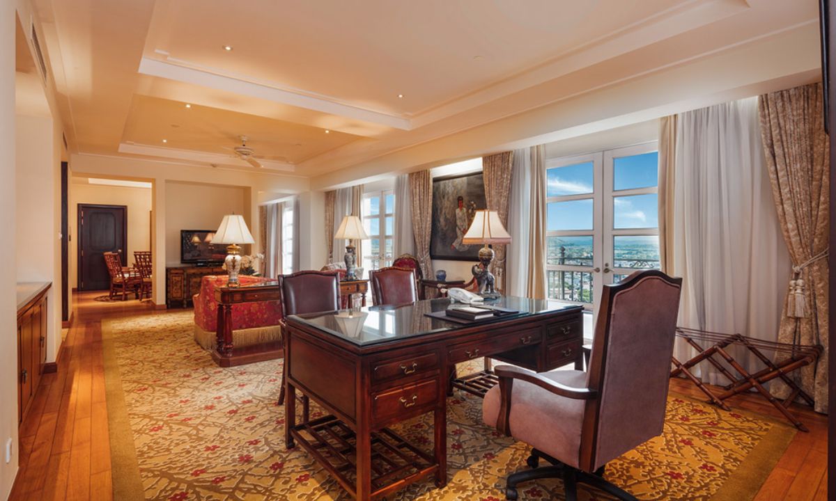 Căn phòng lý tưởng cho những ai muốn không gian rộng rãi và sang trọng. Với phòng ngủ và phòng khách riêng biệt, cùng hai ban công mở ra khung cảnh tuyệt đẹp, 12 phòng hạng Palace Suite là nơi cho bạn những phút giây tận hưởng đúng nghĩa hoặc tổ chức những buổi họp mặt ấm cúng.