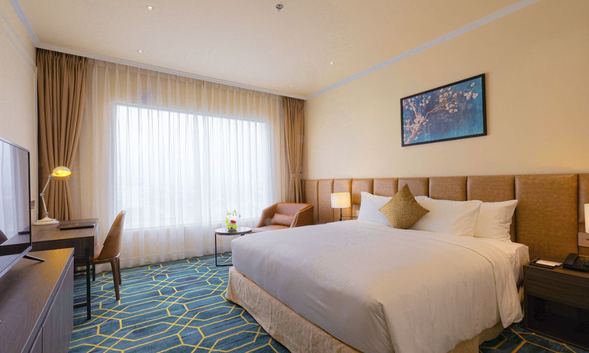 Hạng phòng này được thiết kế với không gian thoáng đãng, nội thất hiện đại, và ban công rộng rãi. Từ đây, du khách có thể chiêm ngưỡng toàn cảnh thành phố Huế yên bình bên dòng sông Đào thơ mộng.