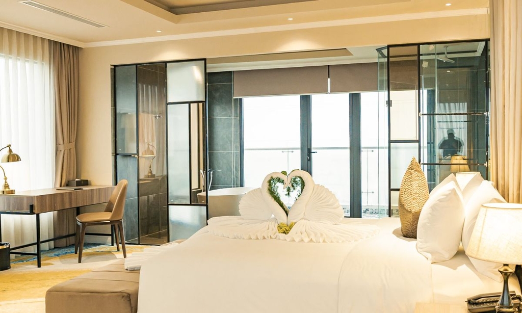 Phòng Luxury kết hợp hài hòa giữa nét đẹp truyền thống và hiện đại, mang lại cảm giác sang trọng và tiện nghi. Đây là lựa chọn lý tưởng cho các gia đình hoặc nhóm bạn muốn trải nghiệm không gian rộng rãi và thư giãn.
