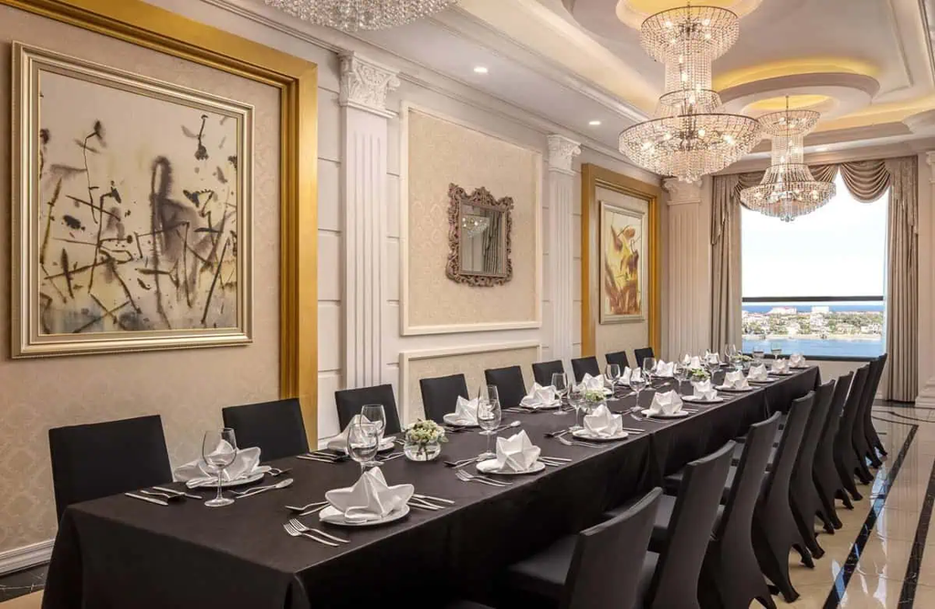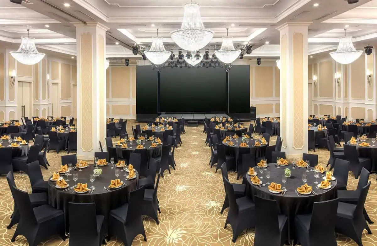 Khách sạn có 4 phòng sự kiện đa dạng quy mô từ 20 người đến 550 người đầy đủ cơ sở vật chất hiện đại. Gam màu trung tính với sự kết hợp hài hòa của màu đen, màu vàng cùng hệ thống ánh sáng, âm thanh tiên tiến tạo nên tính chuyên nghiệp. Bên cạnh đó, đội ngũ nhân viên luôn sẵn sàng hỗ trợ để góp phần tạo nên thành công của sự kiện.