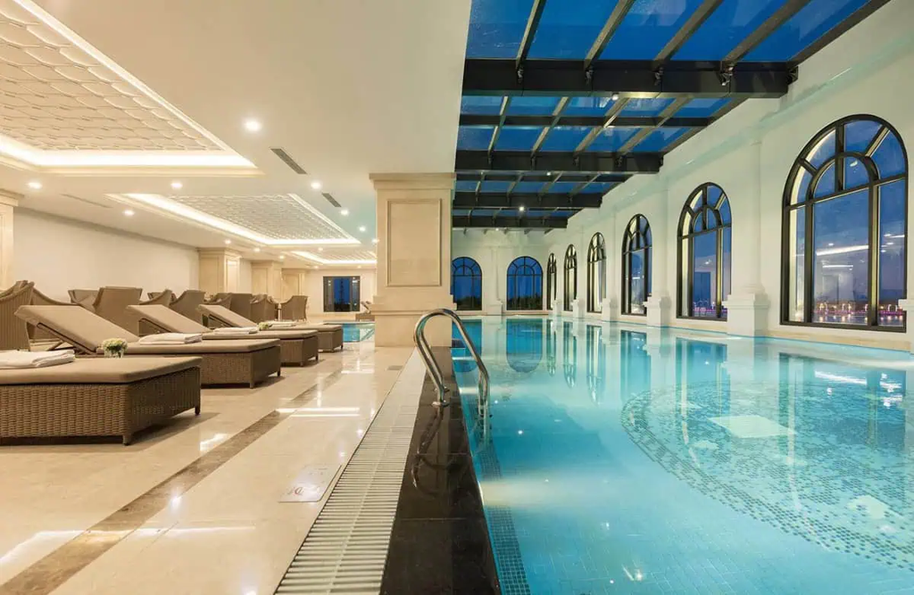 Hồ bơi có diện tích 200m2, sở hữu làn nước trong vắt cho du khách thỏa thích bơi lội mà không cần lo lắng về điều kiện thời tiết.