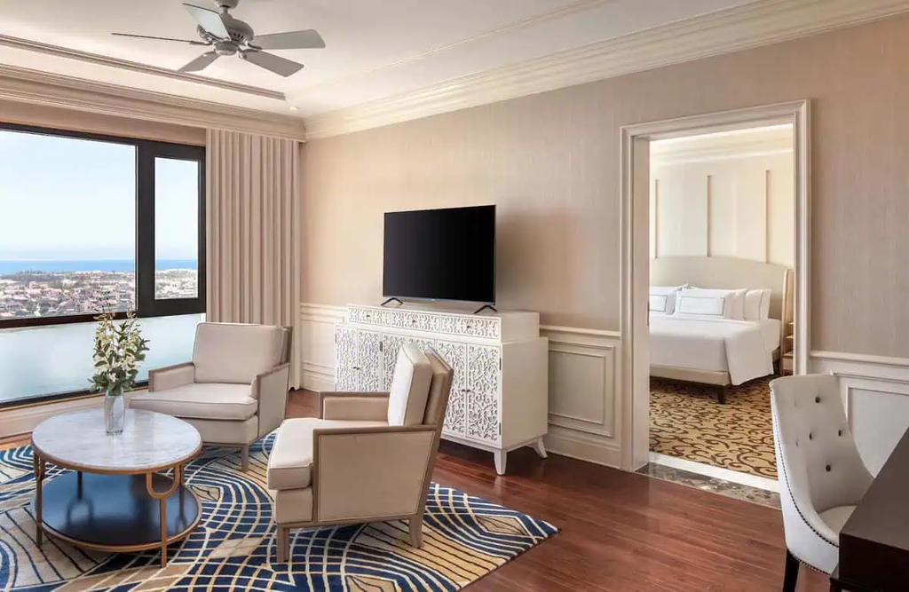 Đây là hạng phòng cao cấp nhất của khách sạn, nằm ở tầng cao nhất, có ban công riêng cho mọi người tầm nhìn bao quát toàn cảnh thành phố và sông Nhật Lệ. Phòng có 2 phòng ngủ, phòng khách, phòng bếp và khu vực làm việc.