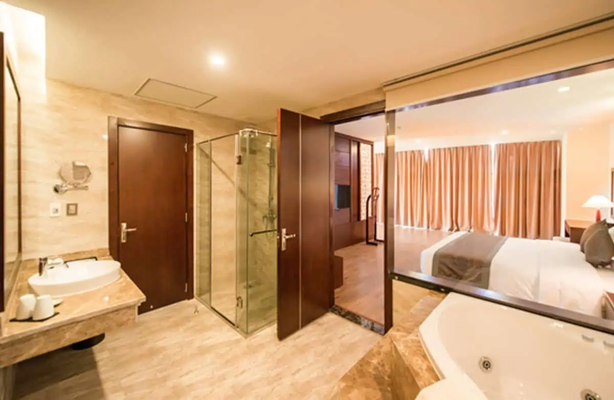 Phòng Executive Suite có tầm nhìn hướng thẳng ra biển Cửa Lò, kết hợp cùng nội thất độc đáo như mang cả ánh trăng đêm rằm vào căn phòng tạo nên sự lãng mạn, huyền ảo.