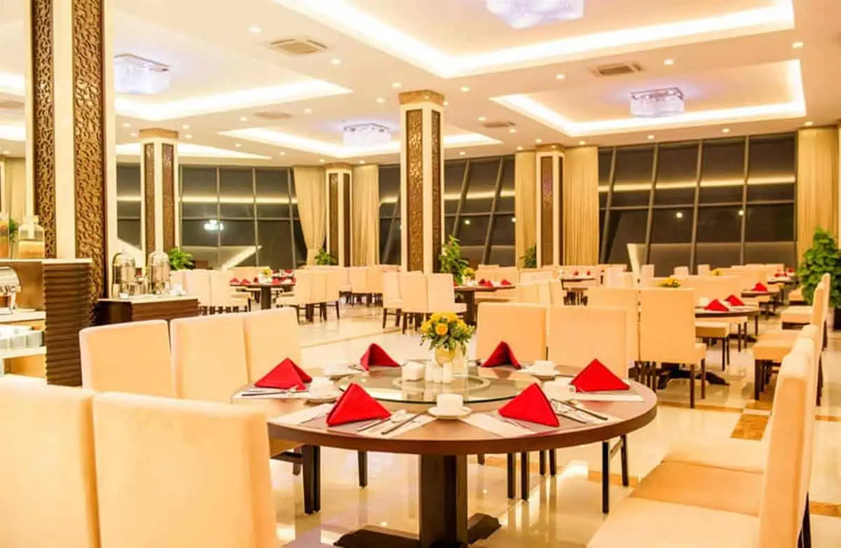 Mọi người sẽ được thưởng thức các món hải sản tươi ngọt mang hương vị biển cả và những món ăn đậm chất miền Trung tại nhà hàng Biển Ngọc, nhà hàng Hòn Ngư. Các món buffet sáng cũng vô cùng phong phú, tươi sốt cung cấp nguồn năng lượng tích cực cho các hoạt động trong ngày của du khách. Ngoài ra, dành cho những buổi tiếp khách thân mật, cao cấp, quý khách có thể lựa chọn phòng ăn VIP. Những yêu cầu về đồ ăn, cách bày trí sẽ được nhân viên tận tâm thực hiện, lưu ý nhằm mang lại sự hài lòng tuyệt đối.