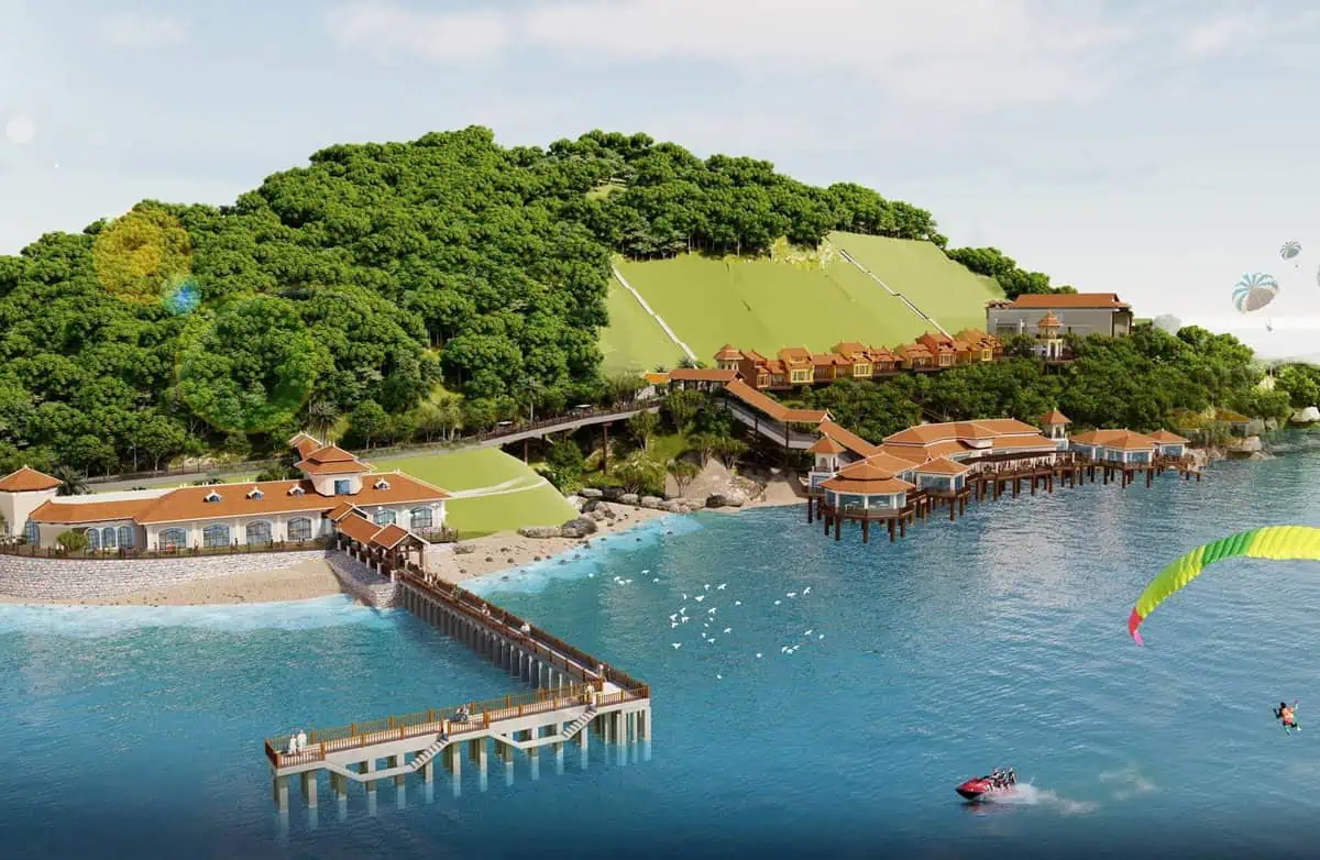 Đảo Lan Châu cách khách sạn khoảng 2km có những bãi đá nhấp nhô, tách biệt hoàn toàn với nhịp sống hiện đại, mang lại cảm giác yên bình giữa thiên nhiên trong lành. Đặc biệt, khi thủy triều xuống, Đảo Lan Châu hiện lên như một bức tranh sơn thủy tuyệt đẹp với bãi cát mịn màng trải dài, tạo nên một điểm check-in độc đáo không thể bỏ lỡ.