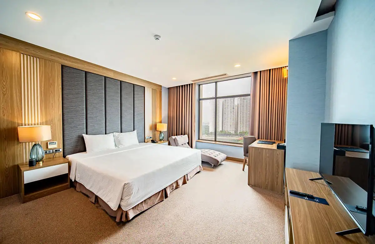Để tăng sự hài lòng của khách hàng, khách sạn cung cấp nhiều hạng phòng khác nhau, phù hợp với các mục đích và đối tượng riêng. Mỗi phòng đều đảm bảo tính rộng rãi, tiện dụng, thoáng mát và được tắm mình trong ánh nắng tự nhiên. Du khách có thể ngắm nhìn khung cảnh thủ đô nhộn nhịp ngay trên chiếc giường ngủ êm ái.
