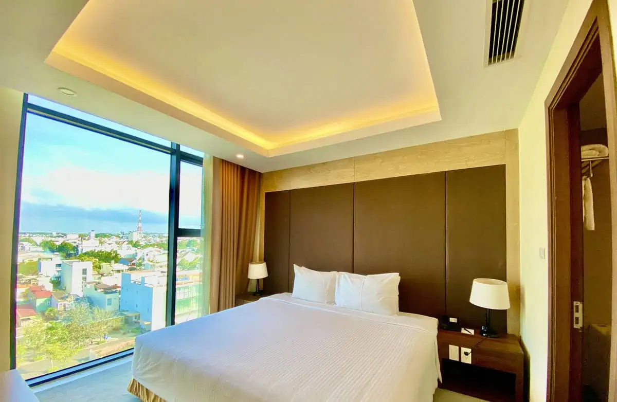 Phòng Presidential Suite nằm ở vị trí độc đáo duy nhất của toà nhà với góc nhìn đẹp, không gian mở và lối thiết kế sáng tạo. Phòng có 2 phòng ngủ, 01 giường đôi, 02 giường đơn và 01 phòng khách với bàn làm việc, quầy bar, bếp, bàn ăn, sofa,...