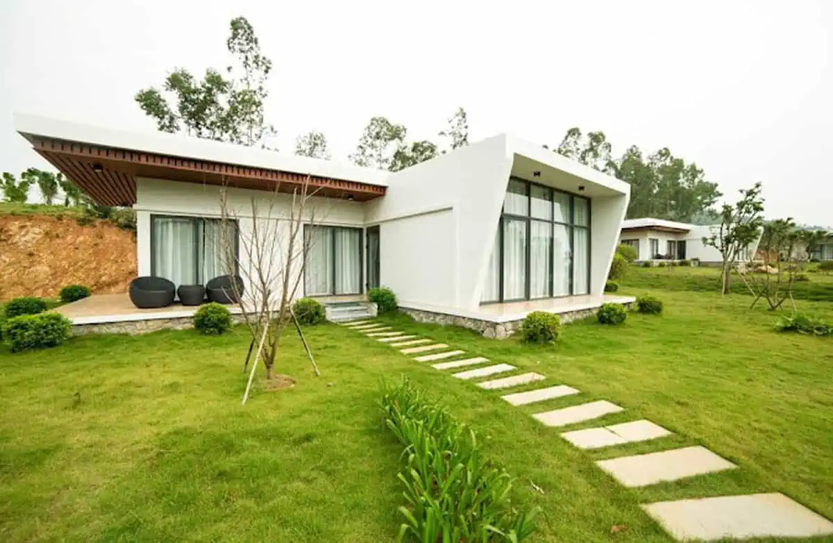 Căn villa đẹp an yên như trong tranh sở hữu mảnh vườn riêng cùng mái hiên rộng rãi là sự lựa chọn phù hợp cho những chuyến nghỉ dưỡng cùng gia đình hoặc nhóm bạn đông người. Villa bao gồm 02 phòng ngủ, phòng khách, khu vực sinh hoạt chung. Đường đi vào villa là thảm cỏ xanh mướt càng làm nổi bật sự thanh tĩnh.