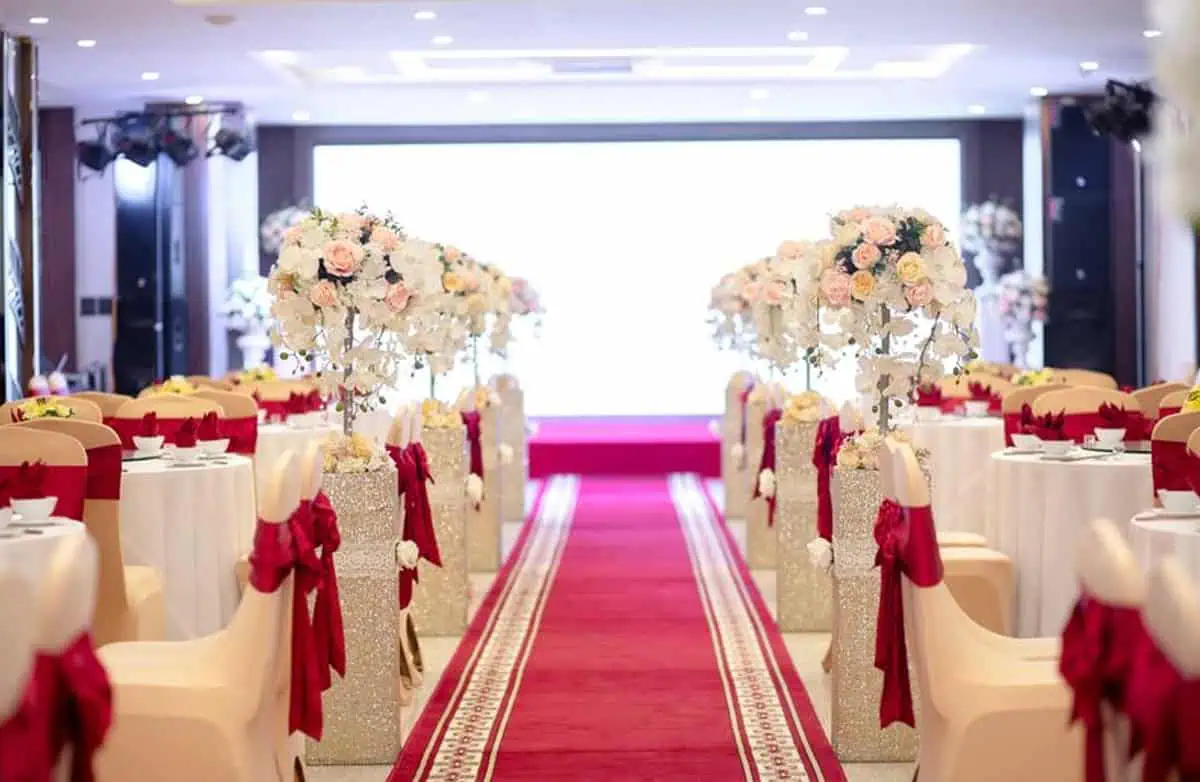 Khách sạn còn có các phòng hội thảo, phòng tổ chức tiệc cưới được trang trí lung linh theo yêu cầu để phục vụ những dịp trọng đại của khách hàng. Các phòng đều sở hữu hệ thống âm thanh, ánh sáng tân tiến, thiết kế nhẹ nhàng với hai màu vàng, đỏ làm chủ đạo. Ngoài ra, đội ngũ nhân viên chuyên nghiệp và tận tâm sẽ hỗ trợ khách hàng hết mình để tạo ra không gian đúng với sở thích nhất.
