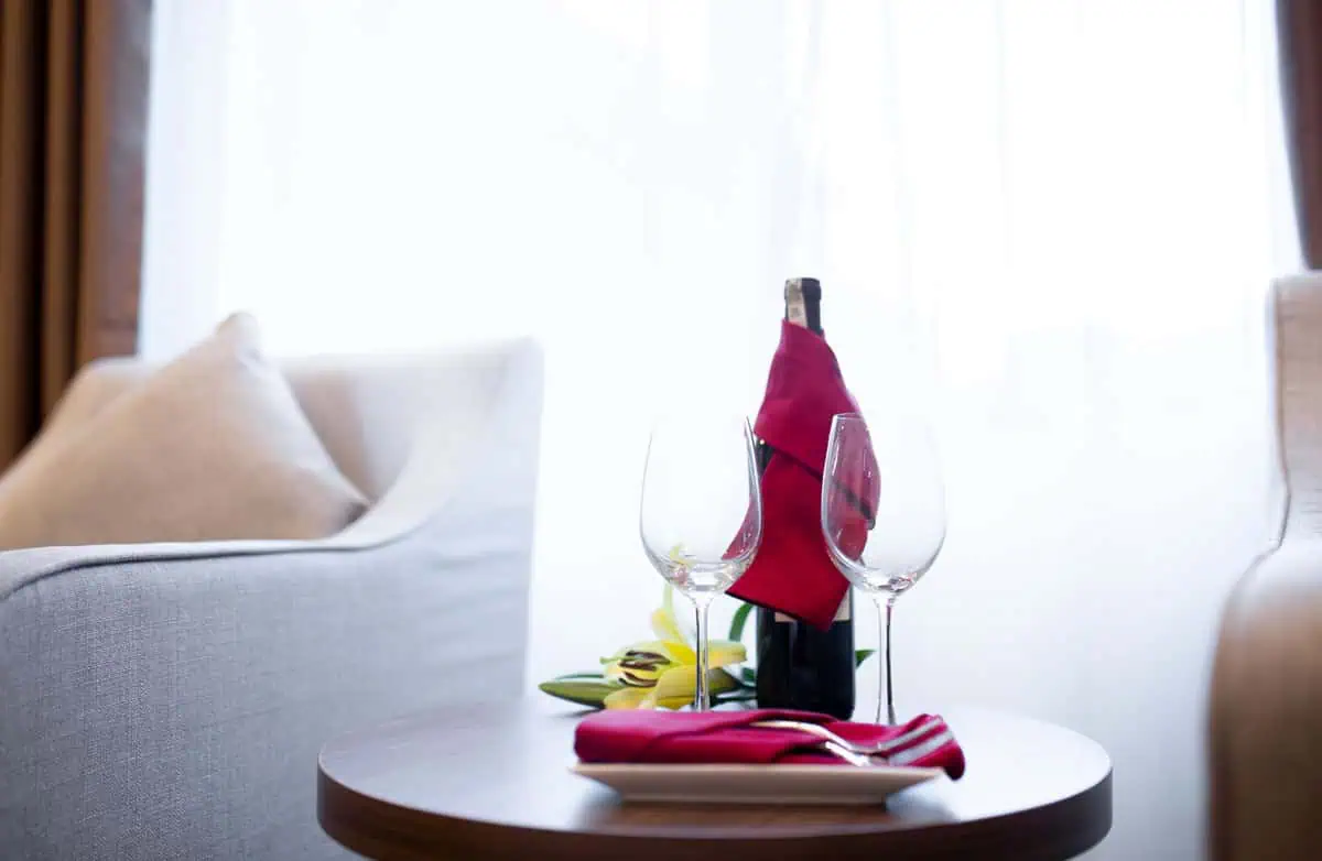 Phòng Executive Suite được chia thành 2 khu vực riêng biệt là phòng ngủ và phòng khách. Giữa 2 phòng được ngăn cách bởi tủ trưng bày rượu, vừa giúp tối ưu không gian vừa thể hiện gu thẩm mỹ trang nhã. Đặc biệt, các bạn có thể thả mình thư giãn trong bồn tắm sục hiện đại.