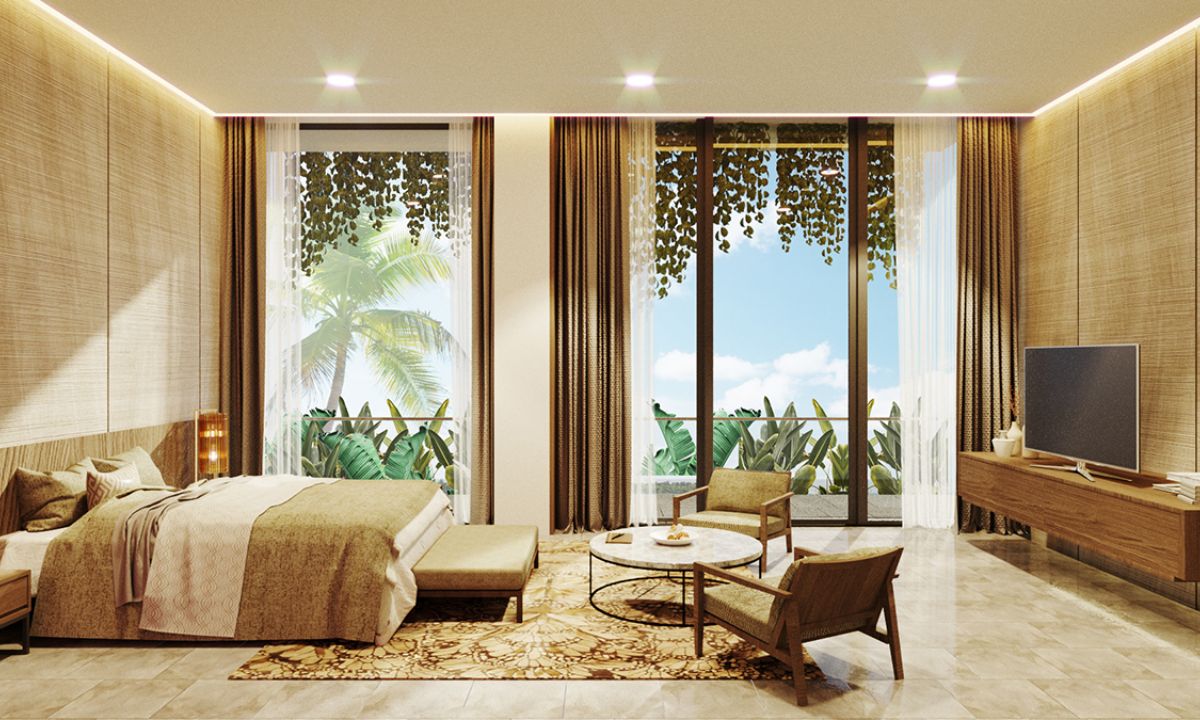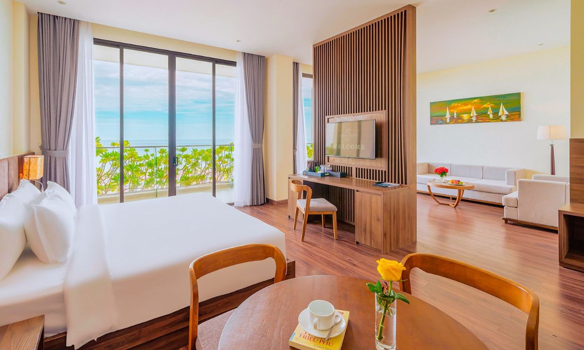 Không gian Studio rộng rãi, hiện đại với ban công lớn mang đến tầm nhìn bao quát ra biển và hồ bơi. Sự kết hợp hoàn hảo giữa tiện nghi cao cấp và phong cảnh lãng mạn khiến đây là lựa chọn lý tưởng cho các cặp đôi hoặc gia đình.