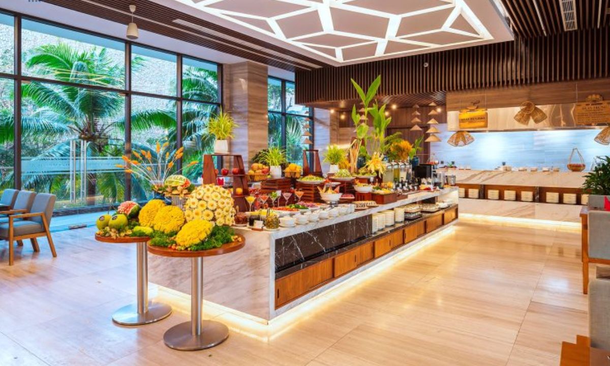 Nhà hàng Ocean: Với vị trí đắc địa cạnh hồ bơi lớn và hướng ra biển xanh, nhà hàng Ocean là nơi bạn bắt đầu ngày mới với bữa sáng buffet phong phú và tận hưởng thực đơn quốc tế đa dạng. Thưởng thức bữa ăn trong khung cảnh thơ mộng để trải nghiệm trọn vẹn hành trình ẩm thực.