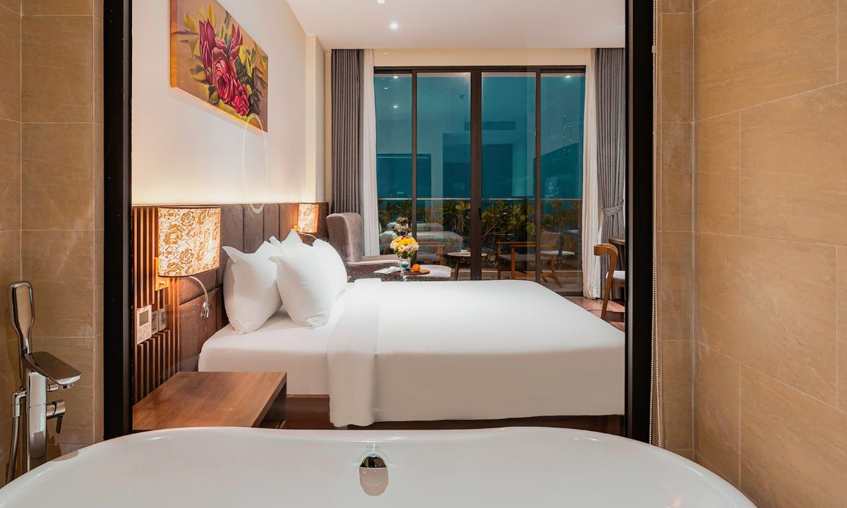 Được thiết kế hiện đại với nội thất trang nhã, phòng Premium Deluxe hướng biển là nơi bạn có thể tận hưởng không gian nghỉ ngơi yên bình và tiện nghi. Ban công lớn nhìn thẳng ra biển mang đến không gian thư giãn tràn ngập hơi thở đại dương, lý tưởng cho những khoảnh khắc riêng tư.