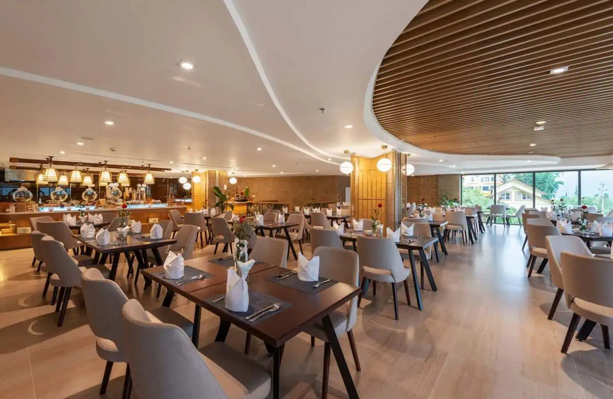 Nhà hàng Tả Phìn: Cung cấp các bữa buffet sáng chất lượng cho mọi người cùng thực đơn phong phú, đa dạng thay đổi theo mùa.