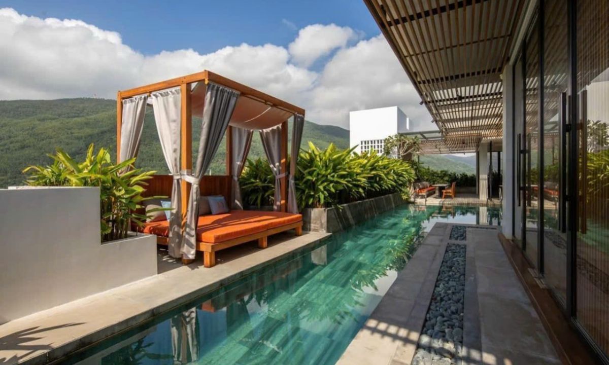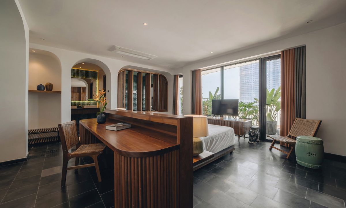 Trải nghiệm sự thư thái đỉnh cao với ban công xanh mát và bồn tắm gần khu cây xanh đầy thơ mộng. Mỗi phòng được bố trí ghế armchair cạnh cửa sổ lớn, nơi bạn có thể ngả lưng thư giãn và hòa mình vào không gian tự nhiên.