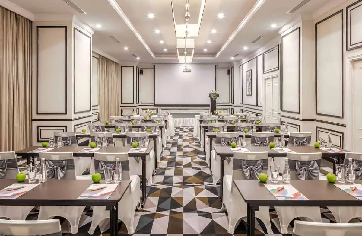 Khách sạn sẵn sàng tổ chức nhiều loại hình hội họp và sự kiện xã hội long trọng với nhiều thiết bị tiên tiến như hội nghị trực tuyến, máy chiếu, micro không dây và thiết kế phòng hết sức trang nhã, nghiêm túc.