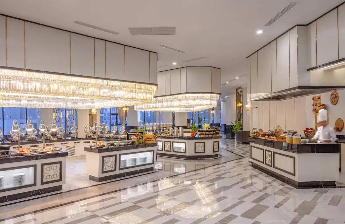 Nhà hàng với ẩm thực đặc sắc và thực đơn phong phú hứa hẹn sẽ giúp bạn thỏa mãn vị giác. Nhà hàng Garnet nằm trên tầng 6 cạnh hồ bơi ngoài trời và nhà hàng Amber ở tầng 5 mang tới những bữa sáng buffet chất lượng, đặc sản 3 miền - thanh đạm của miền Bắc, độc đáo của miền Nam hay dung dị của miền Trung và tinh hoa ẩm thực thế giới.