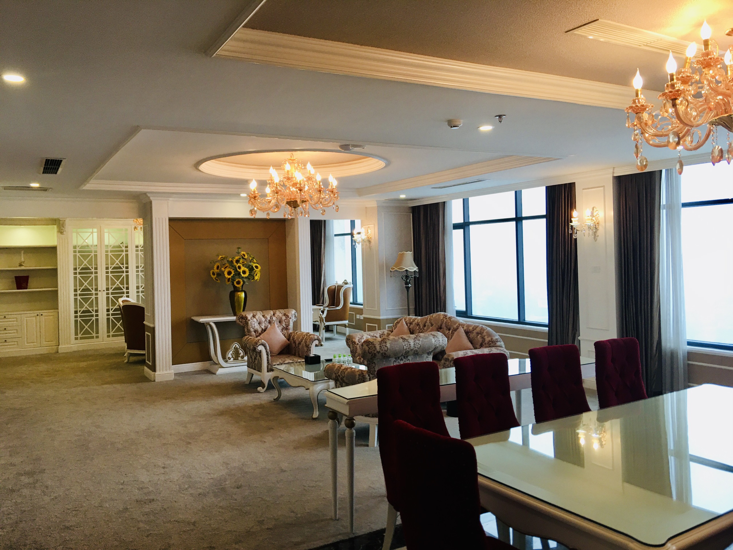 Khu vực làm việc, nghỉ ngơi, tiếp khách được tách biệt càng làm tăng tính riêng tư, chuyên nghiệp của căn phòng, phù hợp với những chuyến công tác kết hợp nghỉ ngơi. Đặc biệt, với thiết kế thú vị, du khách có thể vừa ngâm bồn thư giãn vừa ngắm nhìn màn sương mù huyền ảo bên ngoài cửa sổ.