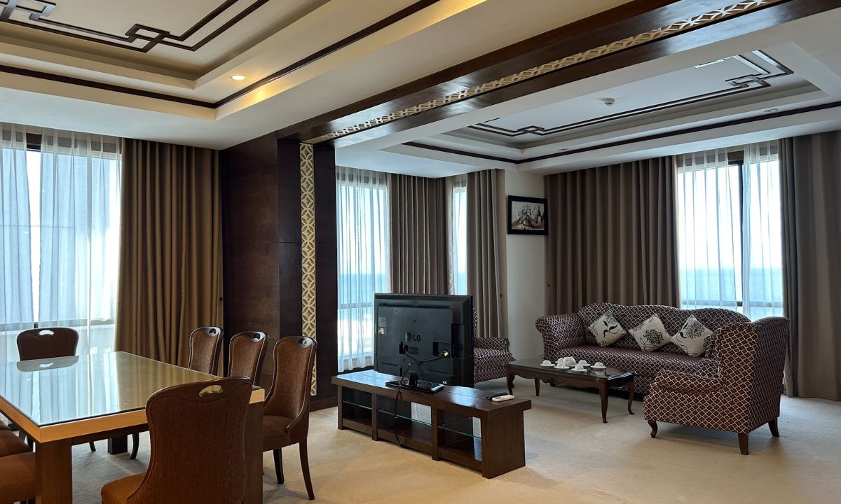 Đây là hạng phòng cao cấp nhất và chỉ có duy nhất 01 phòng. Căn phòng có view biển xinh đẹp, gồm 01 phòng ngủ, 01 phòng khách, 01 phòng họp, 01 phòng bếp đầy đủ tiện nghi. Mọi người có thể nâng cao chất lượng kỳ nghỉ của mình bằng cách thư giãn tại bồn tắm jacuzzi, phòng xông hơi khô hoặc hơi ướt.