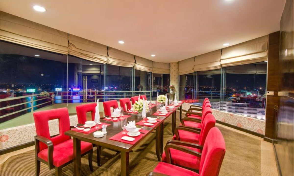 Khách sạn mang đến các không gian hội họp đẳng cấp, từ phòng họp VIP Thượng Tứ nhỏ gọn, lý tưởng cho các buổi họp thân mật, đến phòng họp Kim Long và phòng họp An Hòa, được thiết kế hiện đại, phục vụ các hội thảo quy mô lớn.