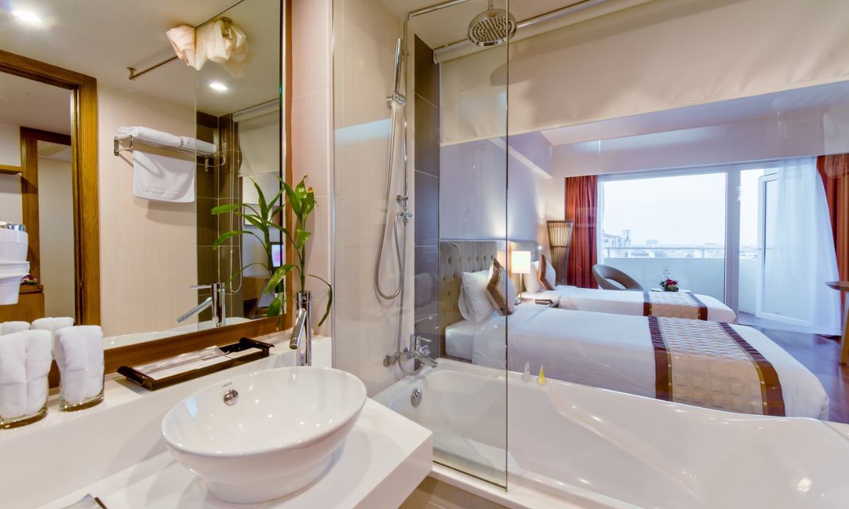 Với thiết kế ấm áp và không gian rộng rãi, giữ được nét tinh tế của cố đô Huế, căn phòng mang lại cảm giác thư giãn hoàn hảo. Nội thất đầy đủ, hiện đại giúp mọi nhu cầu của bạn được đáp ứng.