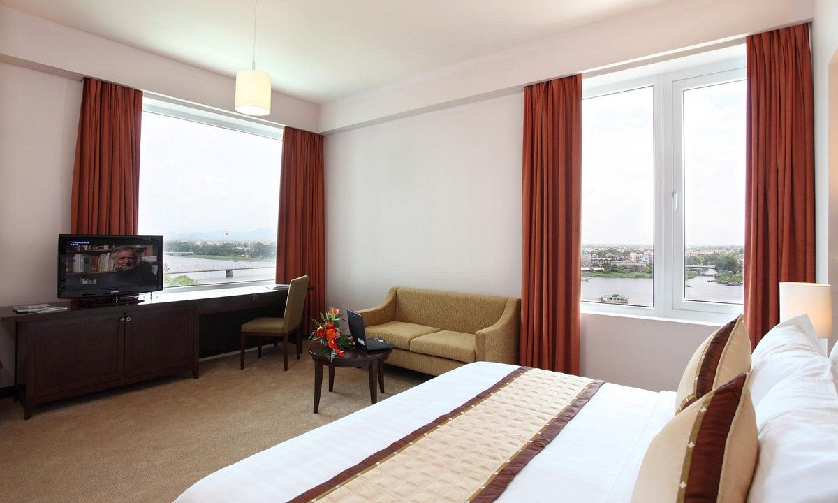 Với tầm nhìn toàn cảnh sông Hương và cầu Tràng Tiền, phòng Premium Deluxe King River View mang đến trải nghiệm đáng nhớ cho mọi du khách. Thiết kế phòng đẳng cấp và các tiện nghi cao cấp như bàn tiếp khách, minibar, cùng khu vực làm việc riêng sẽ làm hài lòng cả những khách hàng khó tính nhất.