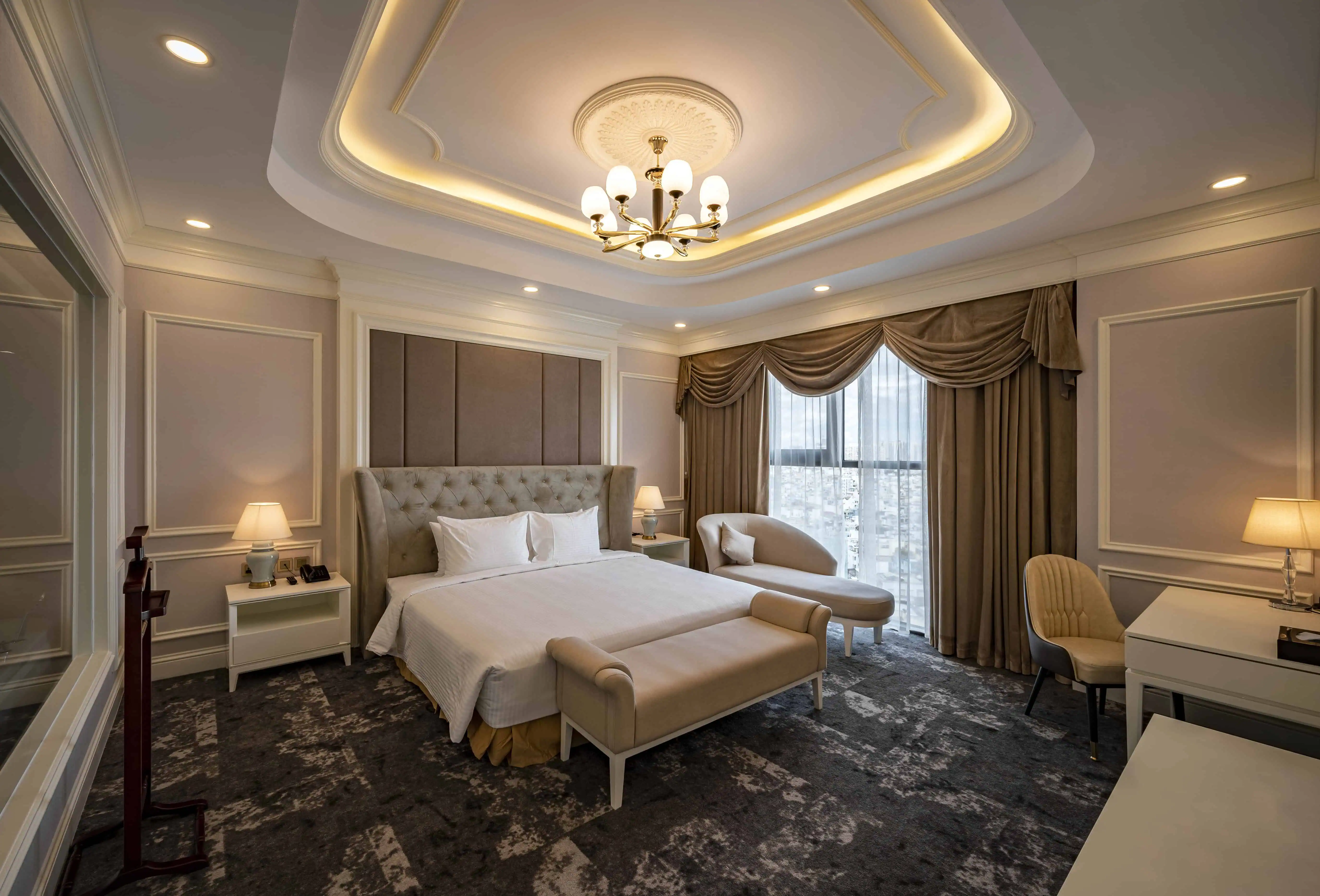 Phòng Executive Suite được thiết kế với phòng khách và phòng ngủ riêng biệt, mang lại sự thoải mái và tiện nghi tối ưu. Điểm nhấn đặc biệt của căn phòng là tầm nhìn toàn cảnh thành phố, cho phép khách thưởng ngoạn vẻ đẹp sôi động từ mọi góc độ.