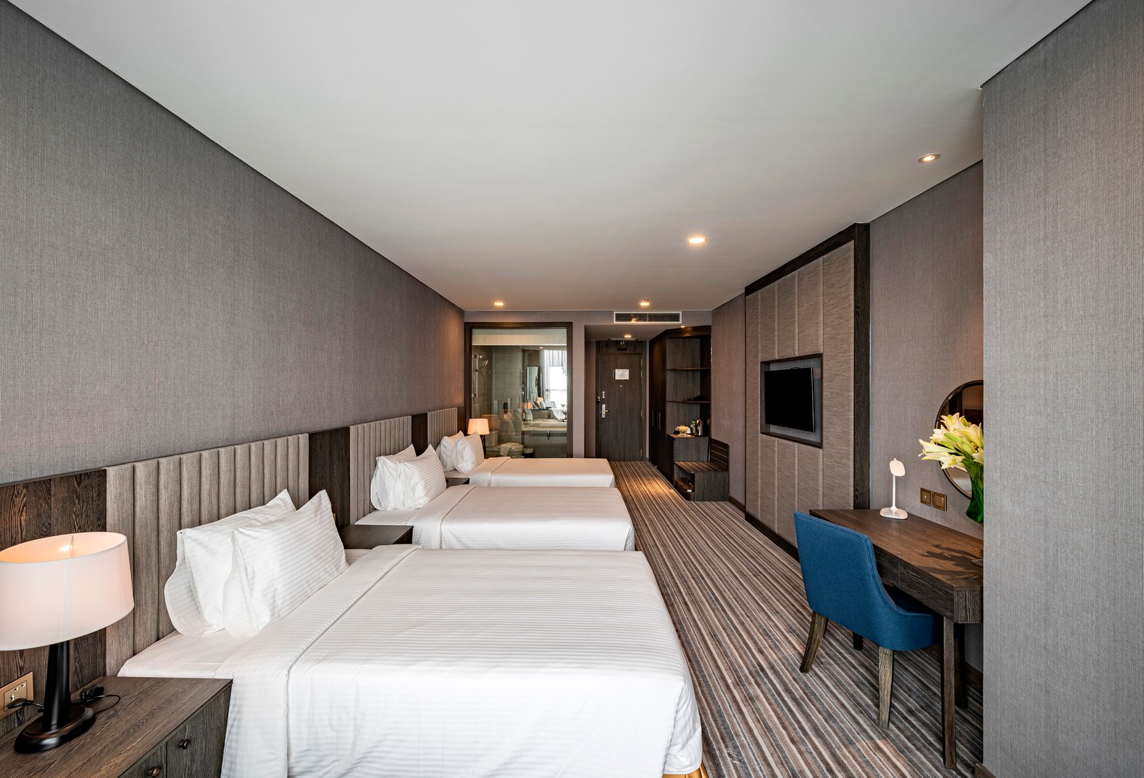 Phòng Deluxe Triple được thiết kế với 3 giường đơn, không gian rộng rãi, lý tưởng cho những chuyến công tác hoặc du lịch cùng gia đình và bạn bè. Nội thất hiện đại kết hợp cùng sự ấm cúng, tạo nên cảm giác thư thái. Phòng còn được trang bị máy lạnh, truyền hình cáp và sofa đáp ứng tối đa các tiện lợi cần thiết.