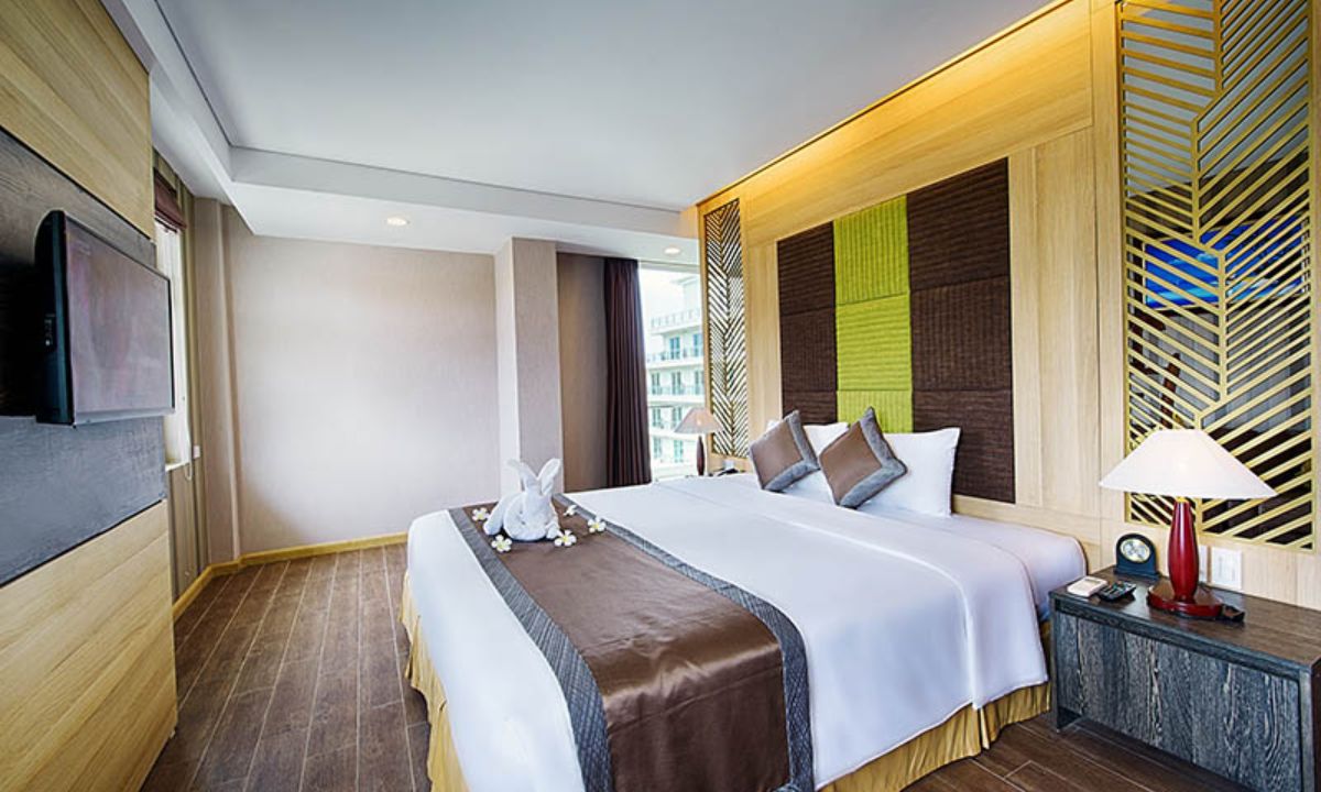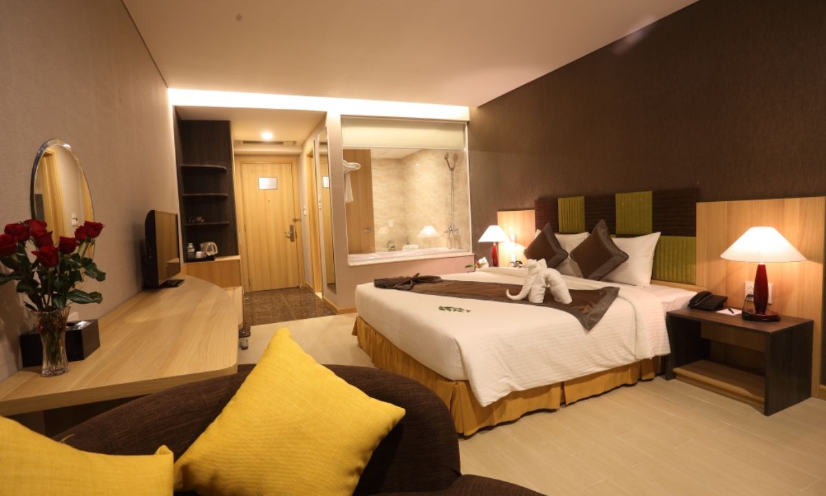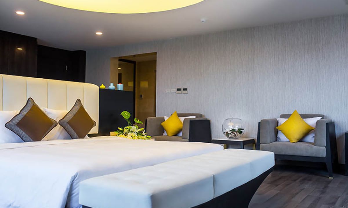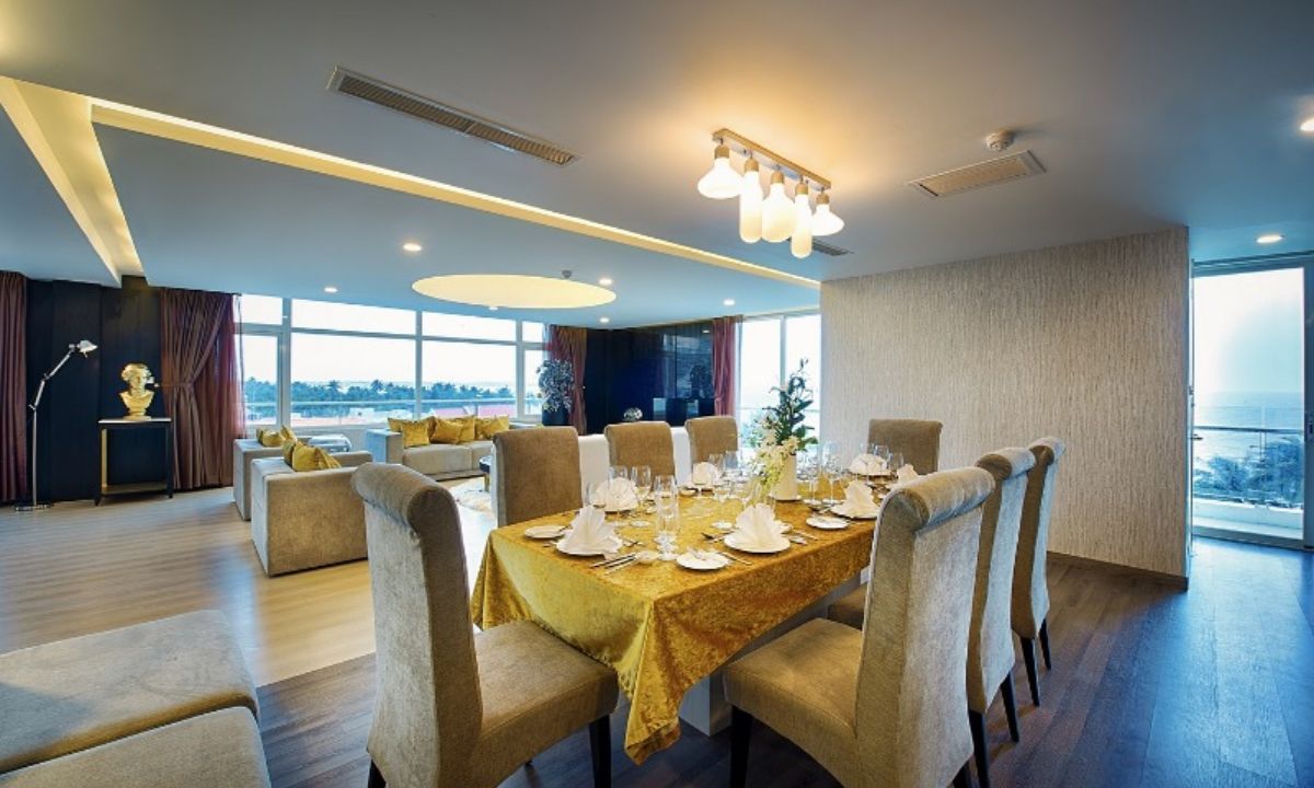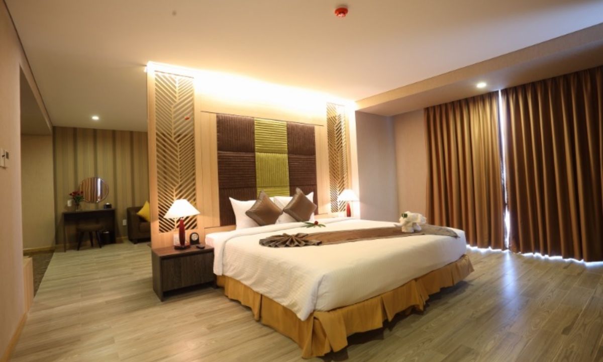 Presidential Suite là điểm nhấn của khách sạn, với thiết kế đẳng cấp và góc nhìn bao quát toàn cảnh Mũi Né. Không gian phòng rộng lớn, gồm phòng khách riêng, khu vực giải trí và cả phòng xông hơi hiện đại. Đây là lựa chọn lý tưởng cho những chuyến nghỉ dưỡng hạng sang hoặc công tác quan trọng.