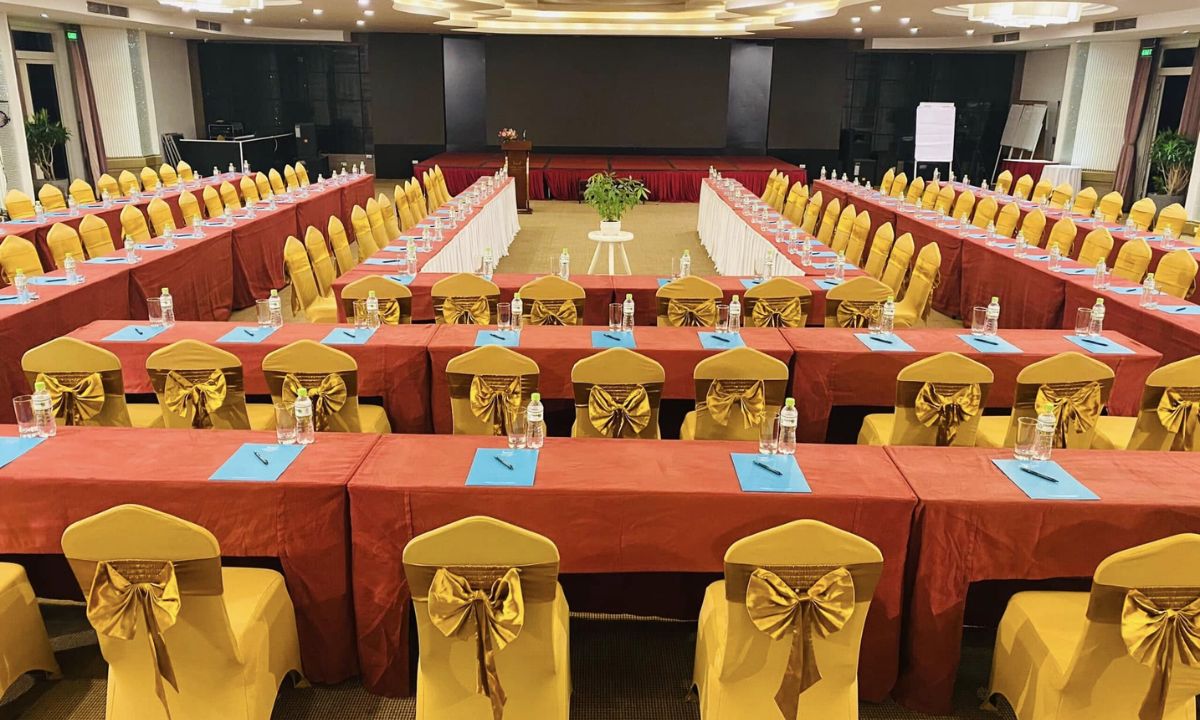Phòng họp được trang bị đầy đủ các thiết bị hiện đại như hệ thống âm thanh, ánh sáng, máy chiếu và màn hình LED lớn. Với diện tích 460m², phòng hội nghị chính có thể chứa đến 400 khách, phù hợp cho các sự kiện lớn như hội thảo, tập huấn hoặc hội nghị khách hàng. Ngoài ra, phòng hội thảo Phú Quý (sức chứa 300 khách) tại tầng 6 với không gian ấm cúng, riêng tư cũng là một lựa chọn tuyệt vời.