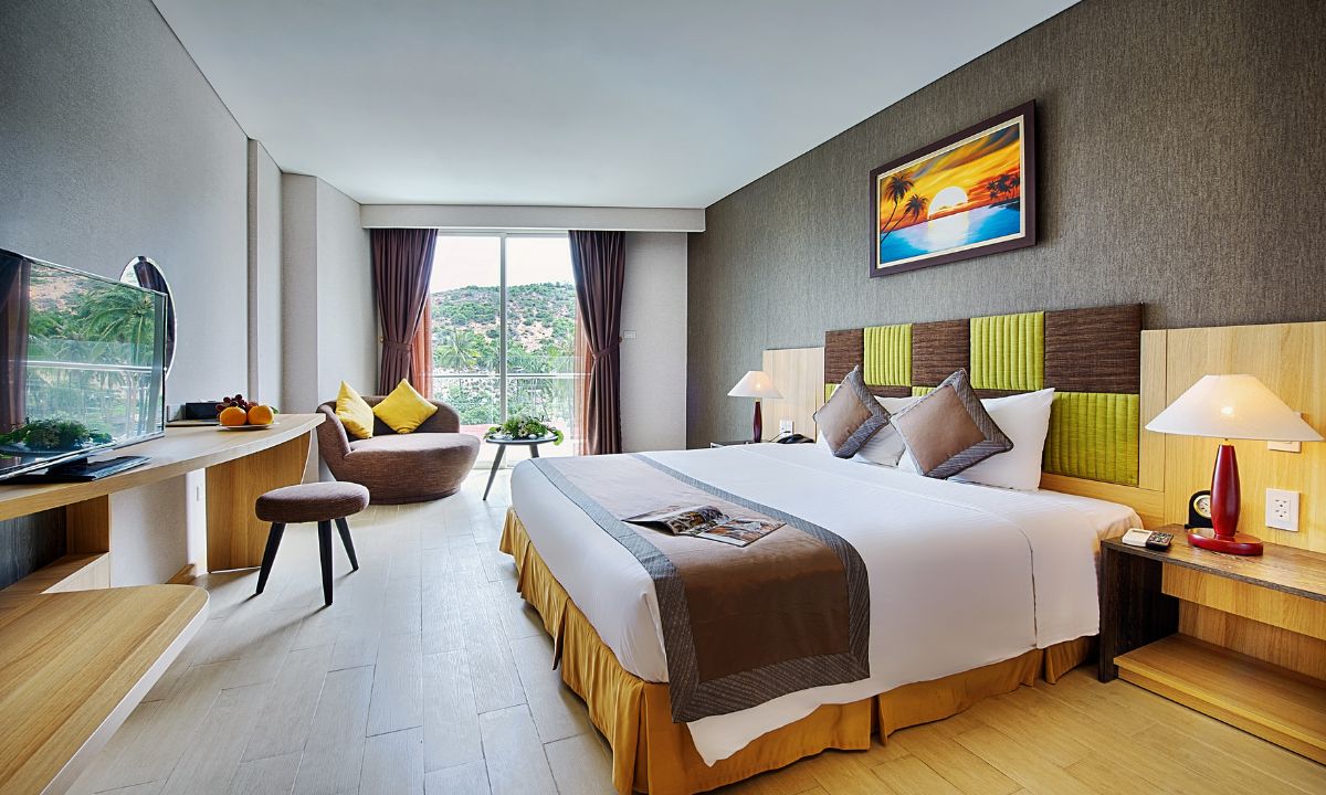 Hạng phòng mang đến trải nghiệm khó quên với khung cảnh biển xanh trải dài ngay trước mắt. Thiết kế tối ưu không gian tạo sự thoáng đãng, cùng cách bài trí tinh tế đem lại cảm giác vô cùng thoải mái.
