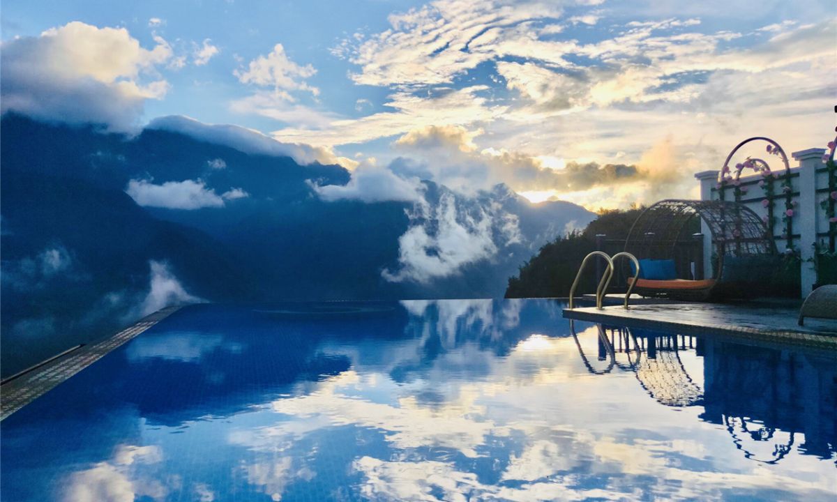 Hồ bơi vô cực nằm tại tầng 12, bên cạnh Fansi SkyBar, là bể bơi vô cực ngoài trời đầu tiên và duy nhất tại trung tâm thị xã Sapa. Không chỉ có làn nước trong vắt phản chiếu hoàn hảo bóng hình mây trời lồng lộng, bể bơi còn có góc nhìn lý tưởng hơn, để du khách thỏa sức chiêm ngưỡng đỉnh Fansipan hùng vĩ, thung lũng Mường Hoa nên thơ hay toàn bộ khung cảnh núi rừng Tây Bắc.