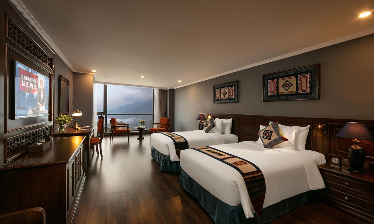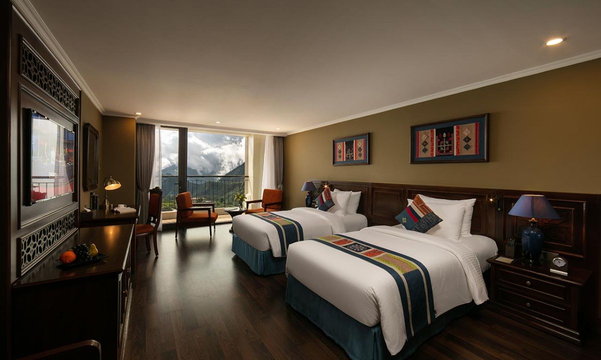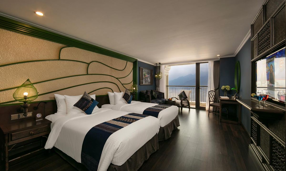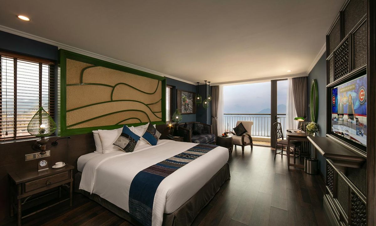 Phòng nằm từ tầng 9 đến tầng 11 của khách sạn, có ban công đơn giản mà tinh tế hướng ra khung cảnh nên thơ của thung lũng Mường Hoa hay thành phố Sapa ẩn hiện. Phòng luôn ngập tràn ánh nắng tự nhiên xua tan đi cái lạnh của vùng cao, được nâng tầm sang trọng với nội thất gỗ tinh tế, trang nhã, phòng tắm lát đá cẩm thạch,...
