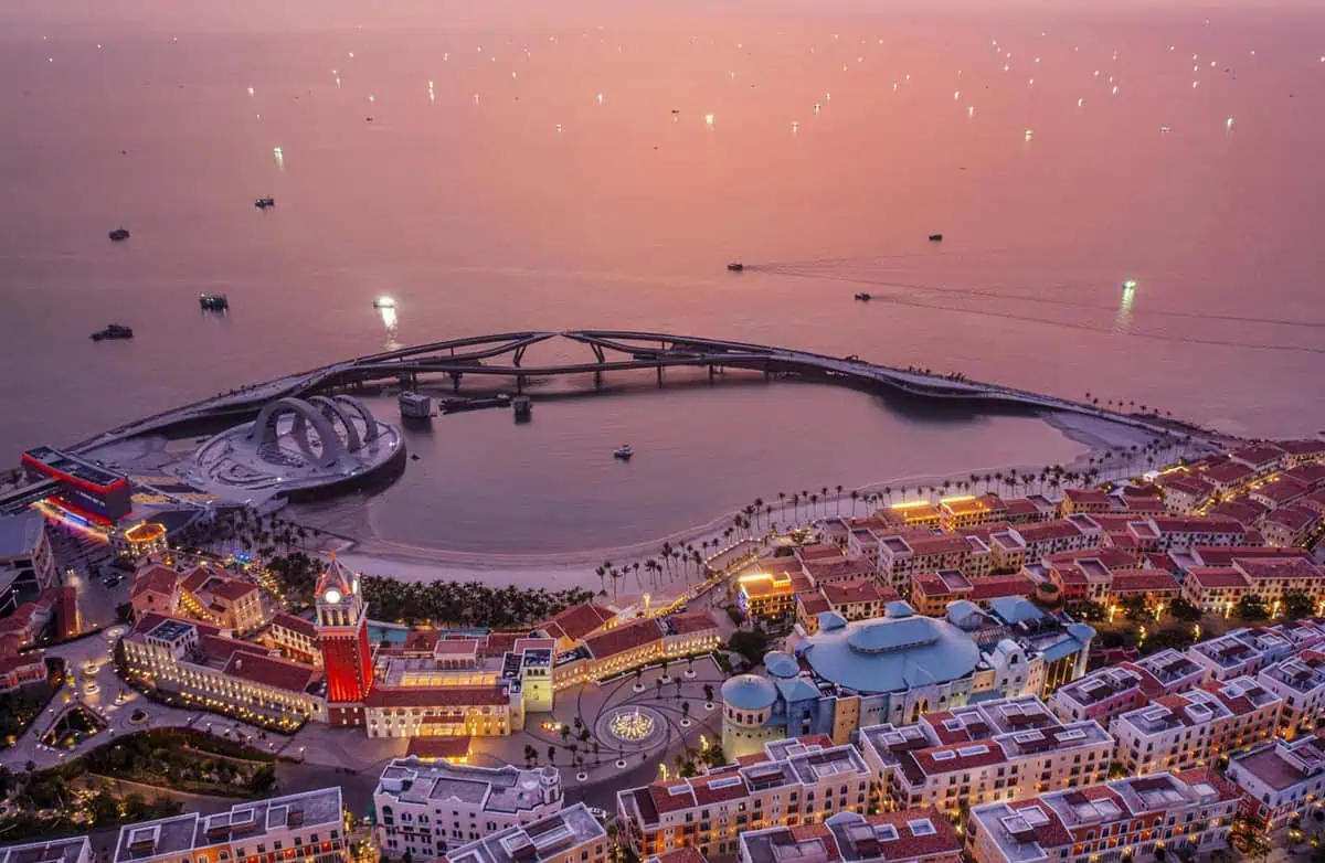 Thị trấn Hoàng hôn cách resort 9,2km, được thiết kế mang phong cách Địa Trung Hải đầy ấn tượng, nơi đây nổi bật với những con phố nhỏ lát đá, những ngôi nhà rực rỡ sắc màu và không gian nghệ thuật độc đáo. Đặc biệt, cây cầu Hôn (Kiss Bridge) – biểu tượng mới của Phú Quốc – mang đến trải nghiệm ngắm hoàng hôn tuyệt đẹp khi mặt trời chìm dần xuống biển.
