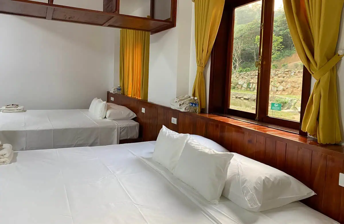 Mỗi phòng đều ẩn mình trong bóng cây im mát, cách xa tiếng khói bụi, ồn ào phố thị. Chỉ cần thức giấc là mọi người có thể nghe được tiếng chim hót líu lo, tiếng sóng vỗ rì rào và tiếng cây lá lao xao.