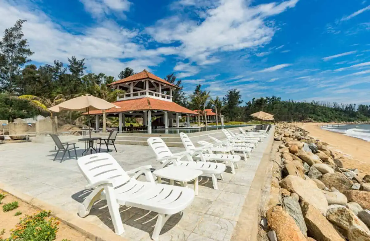 Với địa thế lưng tựa núi - mặt hướng biển, các căn villa của khu resort hầu hết đều hướng mặt ra bãi biển Thạch Hải hoang sơ trải dài 23km, chưa bị thương mại hóa, thu hút du khách bởi bãi cát trắng mịn và làn nước xanh rì. Biển Thạch Hải không quá đông đúc, mang đến cho du khách sự riêng tư để có một kỳ nghỉ trọn vẹn.