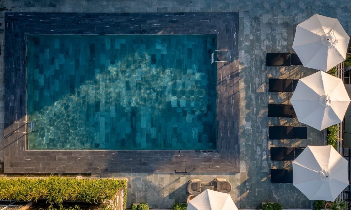 Hồ bơi ngoài trời tại Rosaleen Huế được bao quanh bởi những ghế ngồi phơi nắng thoải mái, giúp du khách tận hưởng ánh nắng mặt trời và không khí trong lành. Tại đây, bạn cũng có thể tổ chức các buổi tiệc ngoài trời hoặc tận hưởng những khoảnh khắc thư giãn cùng gia đình và bạn bè với một ly cocktail trong tay.