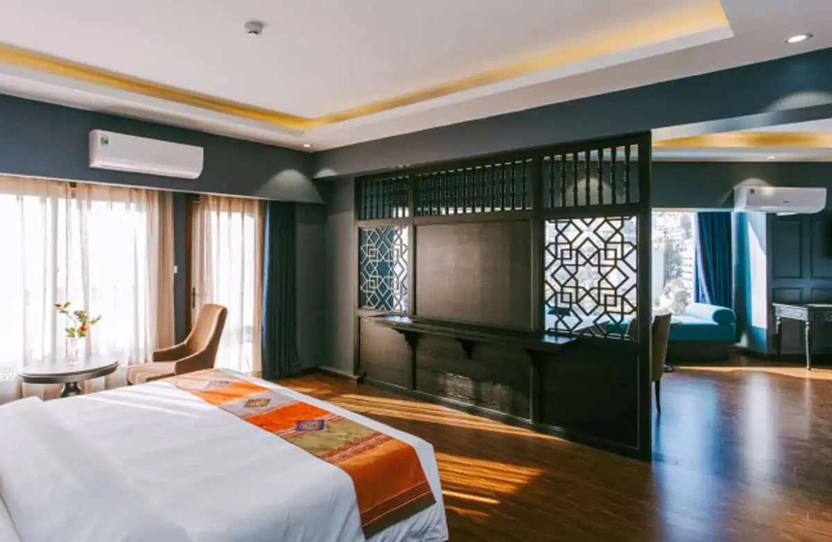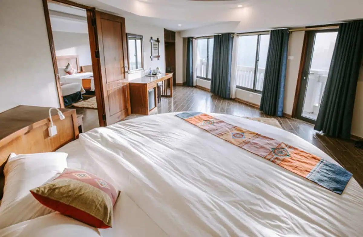 Đây là một trong những hạng phòng có góc nhìn đẹp nhất khách sạn. Đứng ở ban công riêng, các bạn có thể nhìn thấy đỉnh núi Fansipan cao chót vót bị che phủ một phần trong làn mây bồng bềnh và bên dưới là thung lũng Mường Hoa như một dải lụa xanh ngắt. Với hạng phòng này, du khách có thể lựa chọn phòng twin, double hoặc connecting. Đặc biệt phòng connecting có 02 phòng ngủ riêng được ngăn cách bằng 1 cánh cửa.