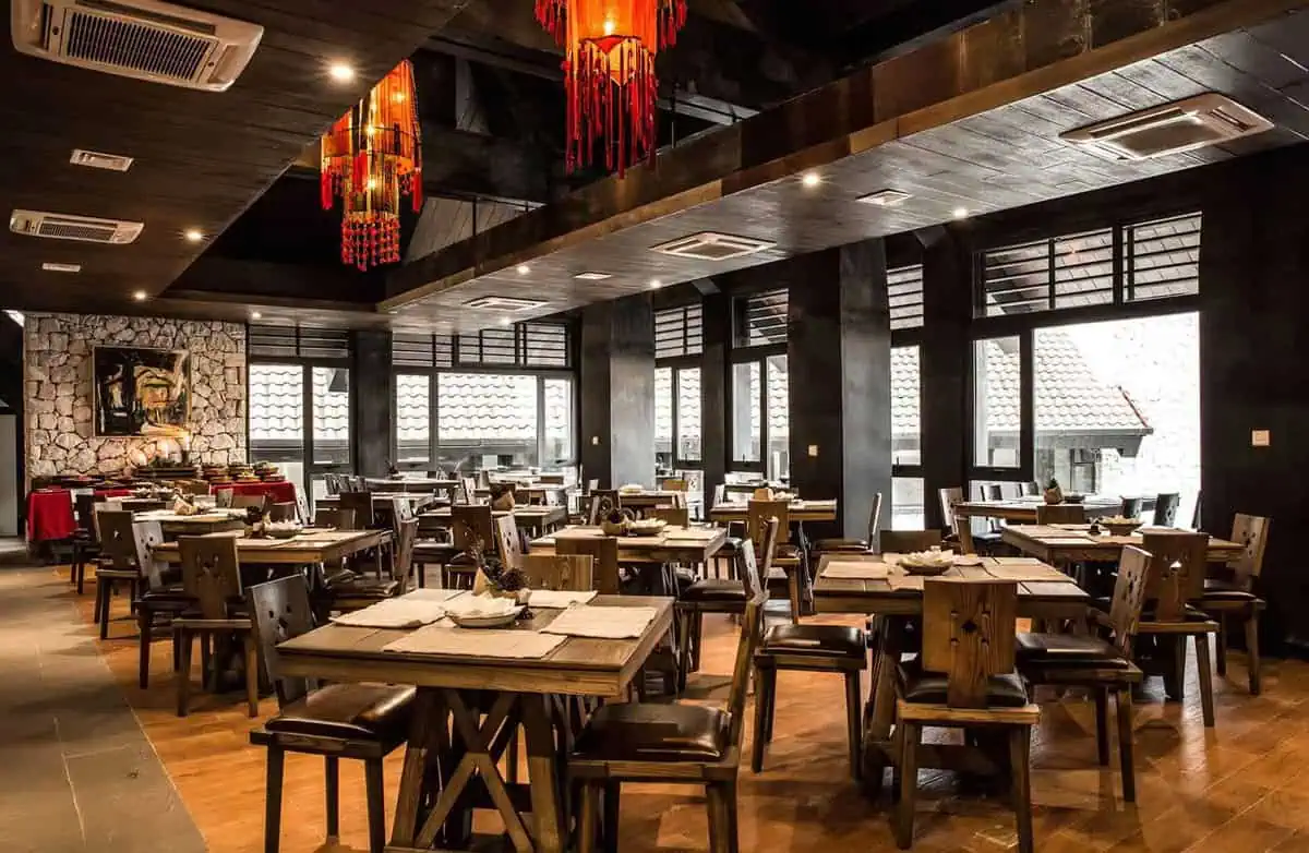 Noj Restaurant được xây dựng dựa trên hình ảnh mái nhà sàn của người dân tộc, kết hợp cùng hệ thống đèn chiếu sáng làm thủ công từ vải thổ cẩm với vải đay dệt tay của người dân tộc Mông, Dao. Noj trong tiếng H’mông có nghĩa là ăn Tết nên nhà hàng sẽ cung cấp cho thực khách nhiều món ăn đặc trưng của người dân tộc vùng cao.