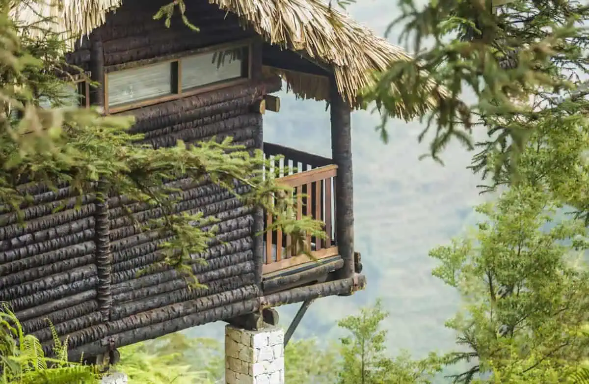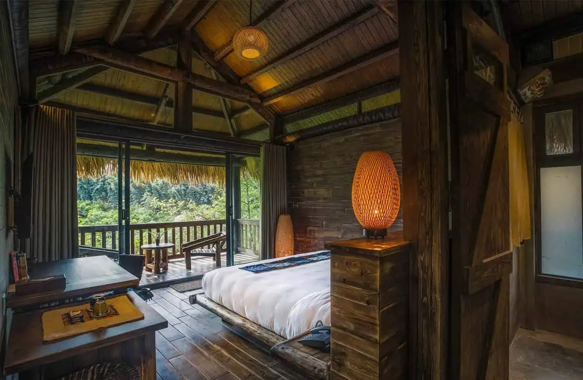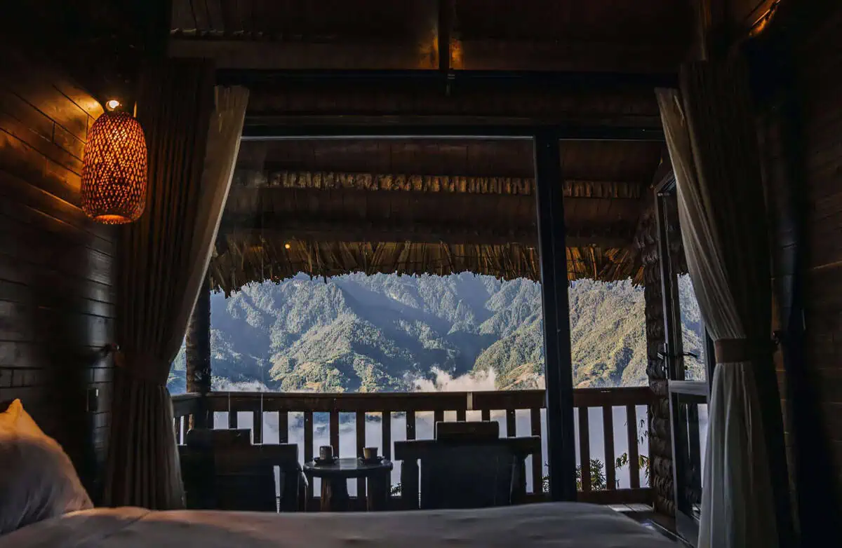 Khu nghỉ dưỡng có 20 căn bungalow mountain view. Căn nhà gỗ có mái cọ ấm áp, thơm mùi thông vì toàn bộ phần mái, sàn, trần đều được ốp ván thông gai nhẵn nhụi. Chỉ cần ngồi ở ban công, du khách sẽ được chiêm ngưỡng toàn bộ nét “kiêu hùng” của núi rừng Tây Bắc. Phòng tắm cũng được trang bị cửa sổ kính cho mọi người vừa ngâm mình vừa ngắm cảnh sắc bên ngoài.