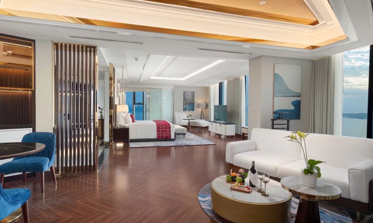 Nằm trên tầng cao nhất của khách sạn, Presidential Suite là đỉnh cao của sự sang trọng với không gian rộng lớn. Tận hưởng sự riêng tư tuyệt đối từ phòng ngủ Master, phòng khách xa hoa, đến khu vực ăn uống mỹ vị. Đây là nơi hoàn hảo cho những buổi tiệc hoặc kỳ nghỉ thượng lưu bên bờ vịnh di sản.