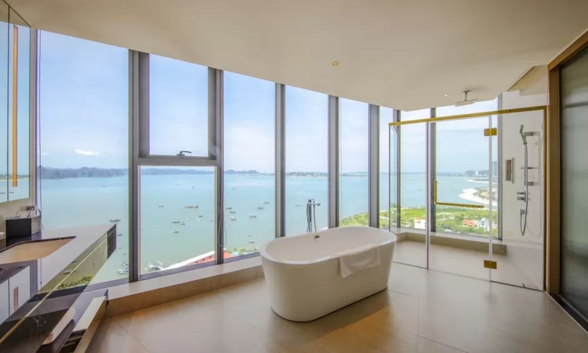 Tựa như một bức tranh sống động, Grand Suite là sự kết hợp hoàn hảo giữa không gian đẳng cấp và khung cảnh thiên nhiên hùng vĩ. Từ ban công riêng, bạn có thể đón nhận làn gió mát lành của vịnh biển, hoặc thư giãn trong bồn tắm sang trọng với khung cảnh thơ mộng mở ra trước mắt.