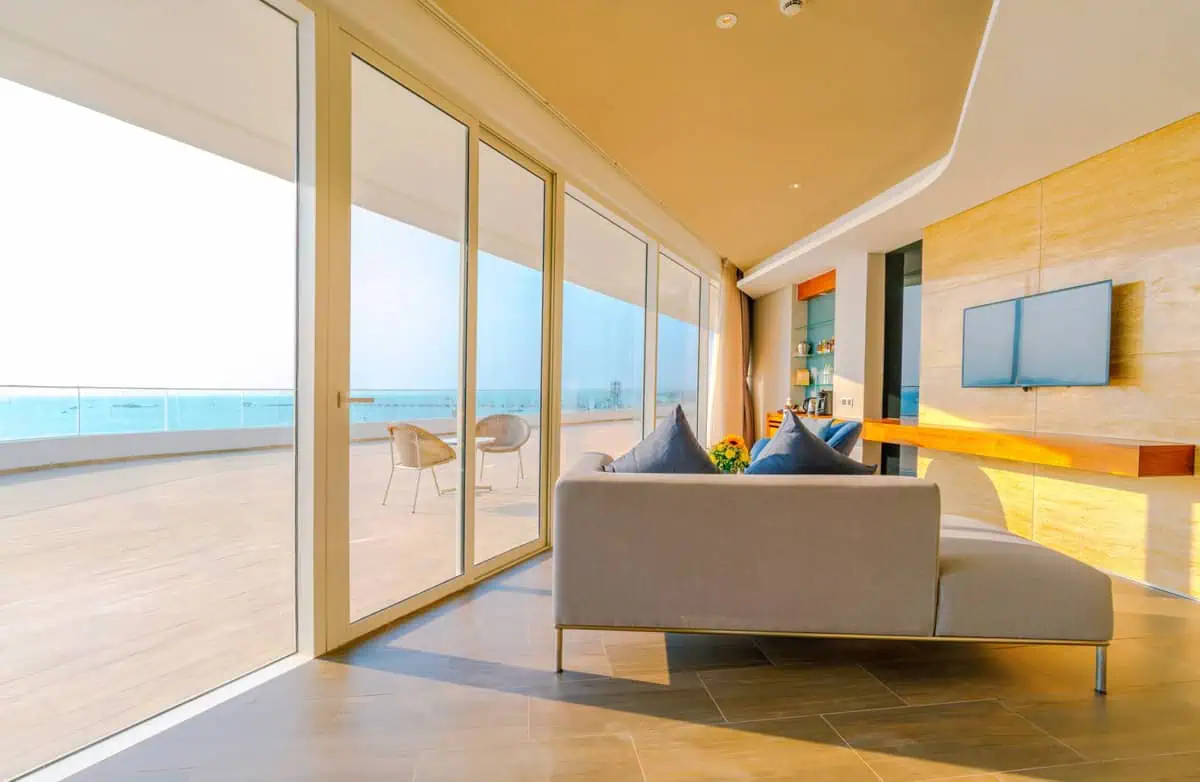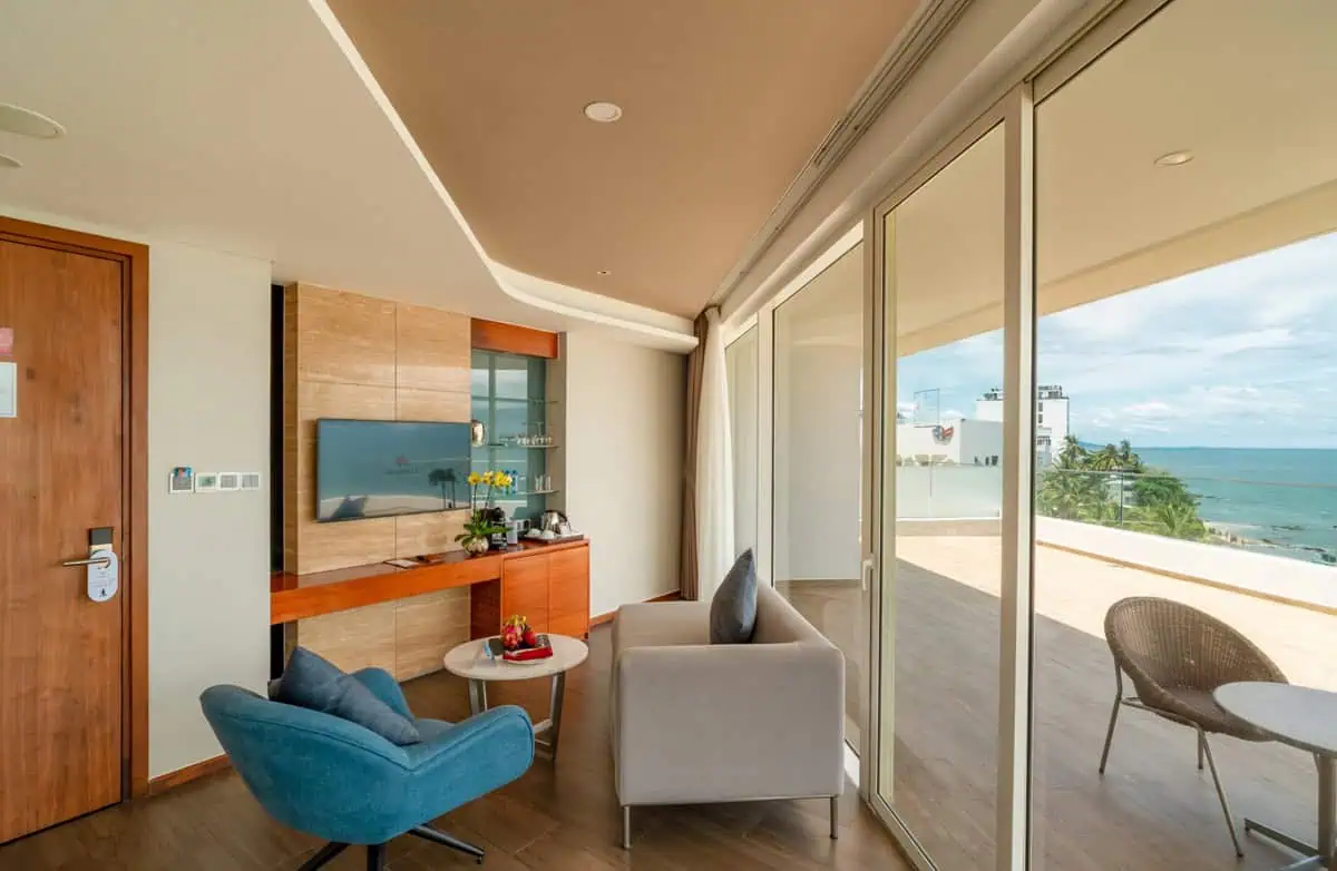 Hạng phòng này gồm 02 loại phòng là Junior suite, Executive suite với 01 phòng ngủ & 01 phòng khách. Các phòng đều được thiết kế theo hình vòm mởi mẻ khiến ban công trải dài từ phòng ngủ đến phòng khách. Bồn tắm được ngăn cách với các phòng bằng tấm cửa thủy tinh giúp bạn vừa ngâm mình thả lỏng vừa có thể ngắm nhìn khung cảnh trời biển bao la bên ngoài.